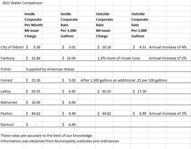 For those interested, here is a closer look at surrounding community water rates when compared to Gibson City.