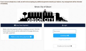 Please notice that the City of Gibson has implemented a new payment processor on our Website. We are now accepting payments through Illinois EPAY, and your payment window should look like the example image below. It can be found in the same place as the previous payment portal, listed under the PAY BILLS tab on our website www.gibsoncityillinois.com . If you have previously saved the link to the payment portal, please update to our newest link; any payments that come across the old link will be voided immediately.