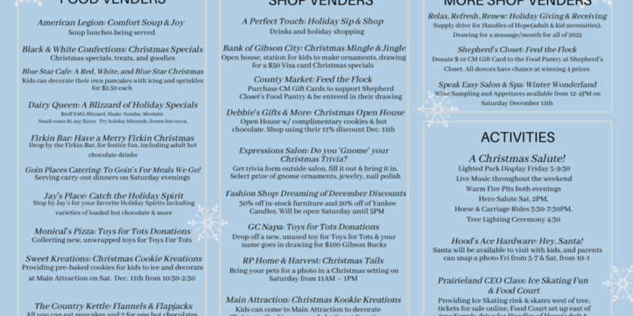 Reminder: The ‘Christmas Comes to Early’ Gibson Bucks program is still happening with plenty of funds still available! Stop in City Hall to get reimbursed in Gibson Bucks after supporting local businesses. See details below: