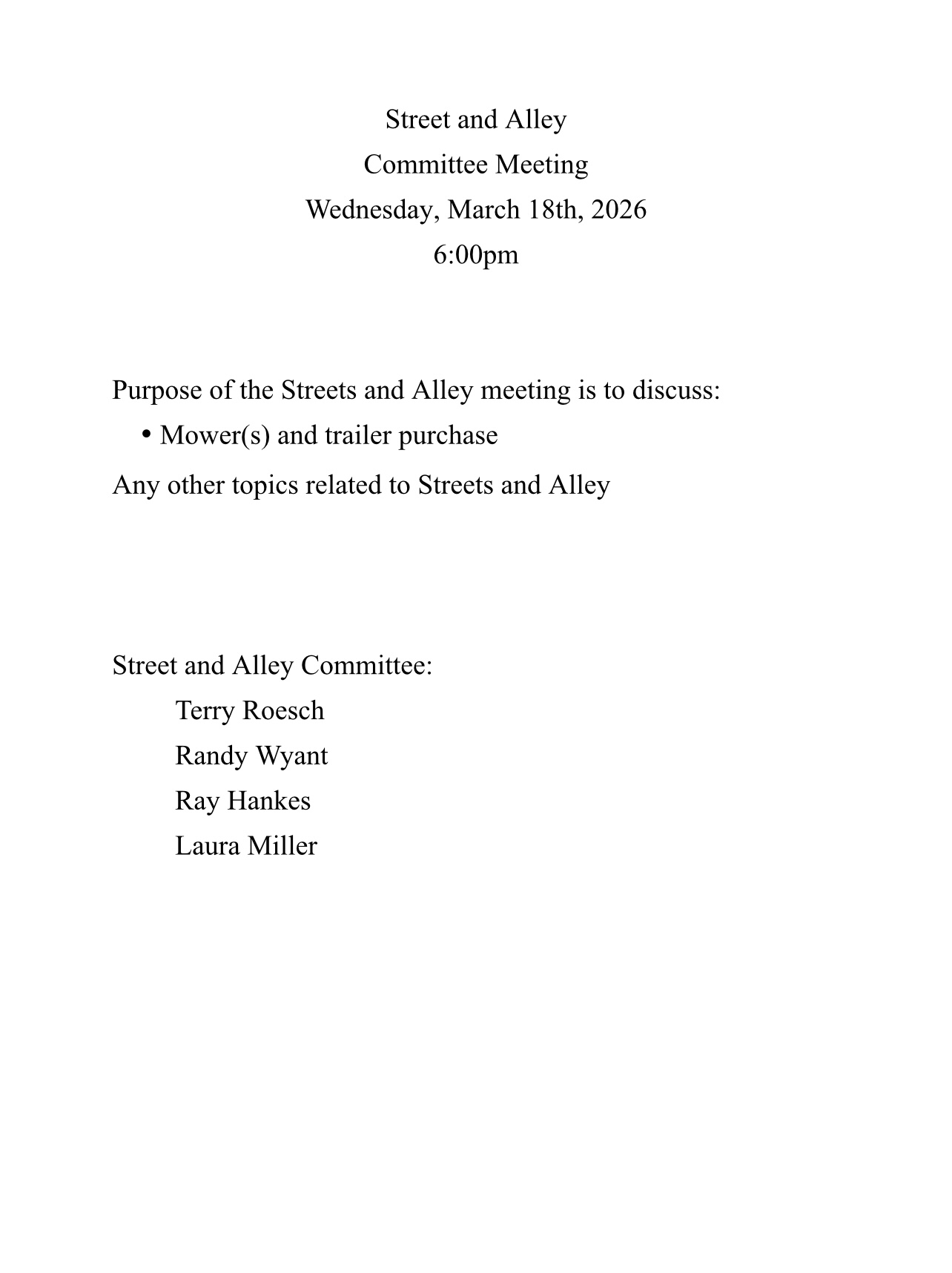 February 19, 2026 Water/Sewer Committee & Street and Alley Committee Agenda
